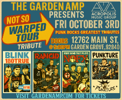 Van's Warped Tour is back! We present to you "Not So Warped Tour Tribute" show with Blink 182, Rancid, NOFX Tributes along with PUNKTURE!