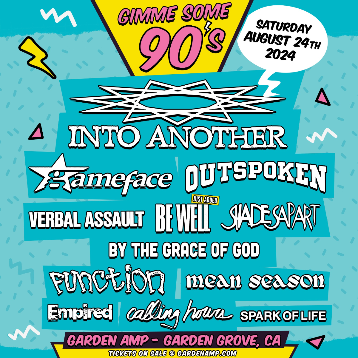 Into Another, Gameface, Outspoken, Verbal Assault, Be Well, Function, Shades Apart, Mean Season, By the Grace of God, Calling Hours, Spark of life