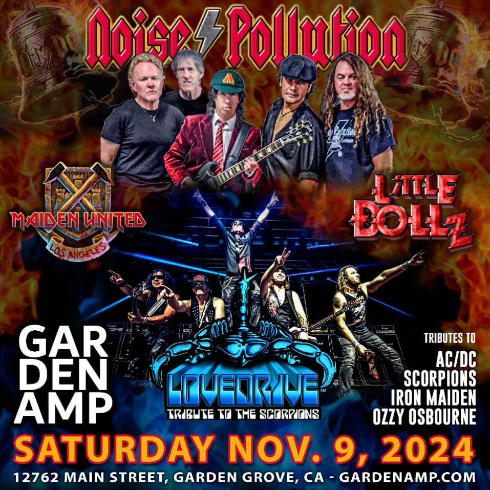 with Noise Pollution (The AC /DC Experience), Lovedrive (Tribute To The Scorpions), Maiden United, Little Dollz (Female fronted Ozzy Osbourne tribute)
