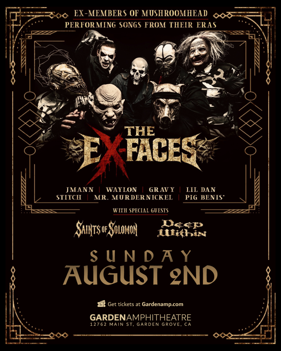 The Ex-Faces consists entirely of Ex-members from the masked-metal band Mushroomhead. Having recently reunited to deliver live shows that pay tribute to the eras they belonged to. Playing the classics fans love and also tapping into the back catalog of songs that have never been played live before, giving fans new and old a way to take a trip back to the earlier eras. The Lineup Jason "J Mann" Popson – Vocals Waylon Reavis – Vocals Dave "Gravy" Felton – Guitar Daniel "Lil Dan" Fox – Drums Richard "Stitch" Thomas – Samples Joe "Murdernickel" Kilcoyne – Bass Jack "Pig Benis" Kilcoyne - Bass {select shows only} The Ex-Faces isn’t just a project, it is a crew composed of those that helped build an empire, like-minded individuals that together are paying tribute to an era that is in high demand amongst fans all over the world. This lineup reunites the voices, the riffs and the chaos that defined an era of masks and mayhem! A dual-vocal assault from Waylon Reavis and J Mann, the band bridges the gap between haunting melody and pure rage. The percussive powerhouse of Lil Dan on the drums, the punishing rhythm section of bass player Mr. Murdernickel and Pig Benis, {Pig Benis on select shows only} to the sickly surgical guitar work from Gravy, followed by the textural audio provided by Stitch. This band is a reminder that after you dust off the masks, the madness still remains! This isn't just a tribute act, it's an evolution and a statement bringing together decades of touring chemistry to create something leaner, meaner and more focused than ever before. The faces may be "Ex” but our impact is forever.